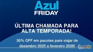 Aproveite a AZUL FRIDAY 2025 e garanta 30% OFF em pacotes de viagem (aéreo + hotel) usando o promocode VERAO30.…